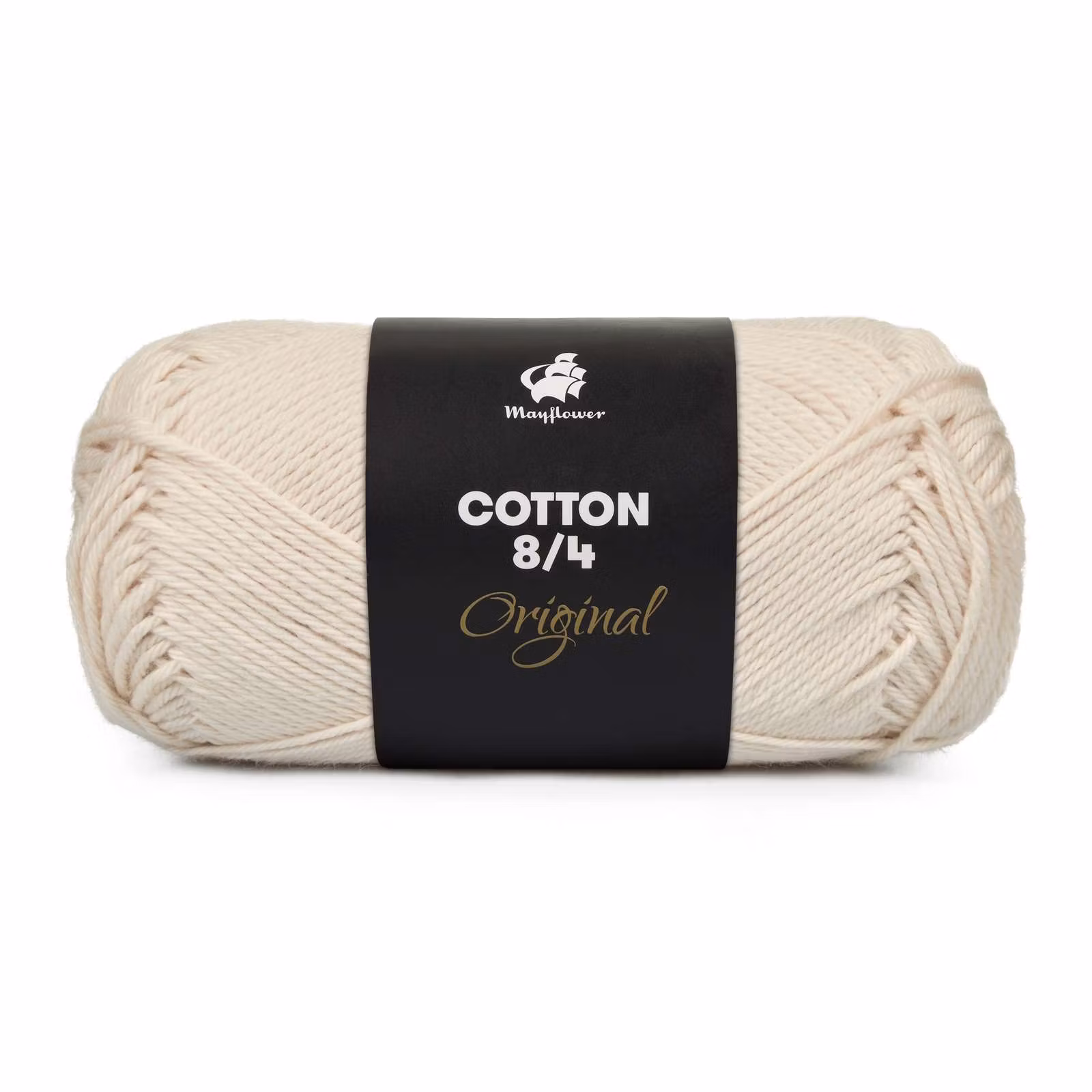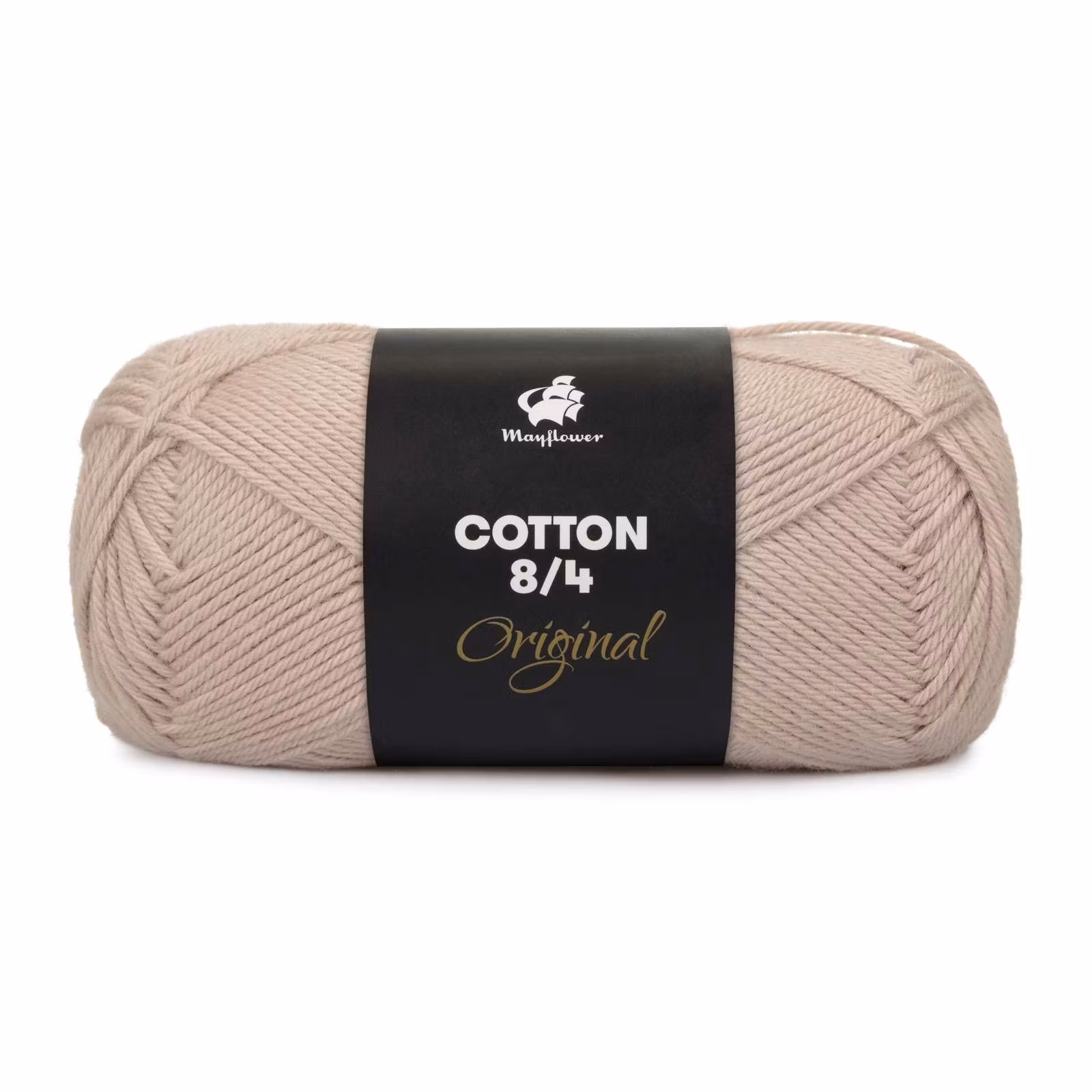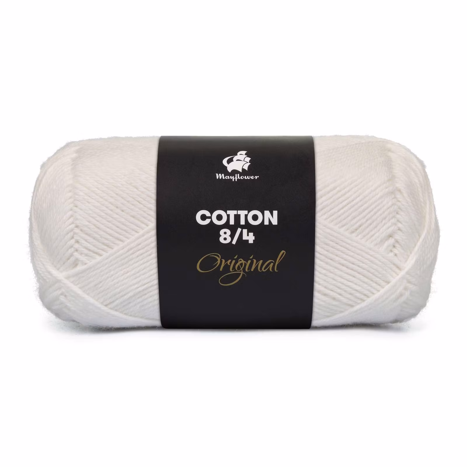 Mayflower Cotton 8/4 är ett uppskattat bomullsgarn i 100% ren bomull, älskat för sin höga kvalitet och sitt stora urval av färger. Garnet har en mjuk och fin struktur som gör det lätt att arbeta med, oavsett om du stickar eller virkar. Det ger ett jämnt och vackert resultat, vilket gör det till ett perfekt val både för nybörjare och för dig som skapar varje dag.