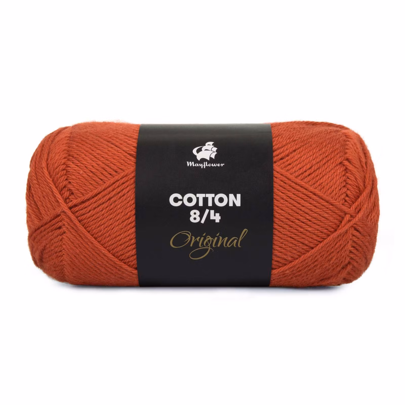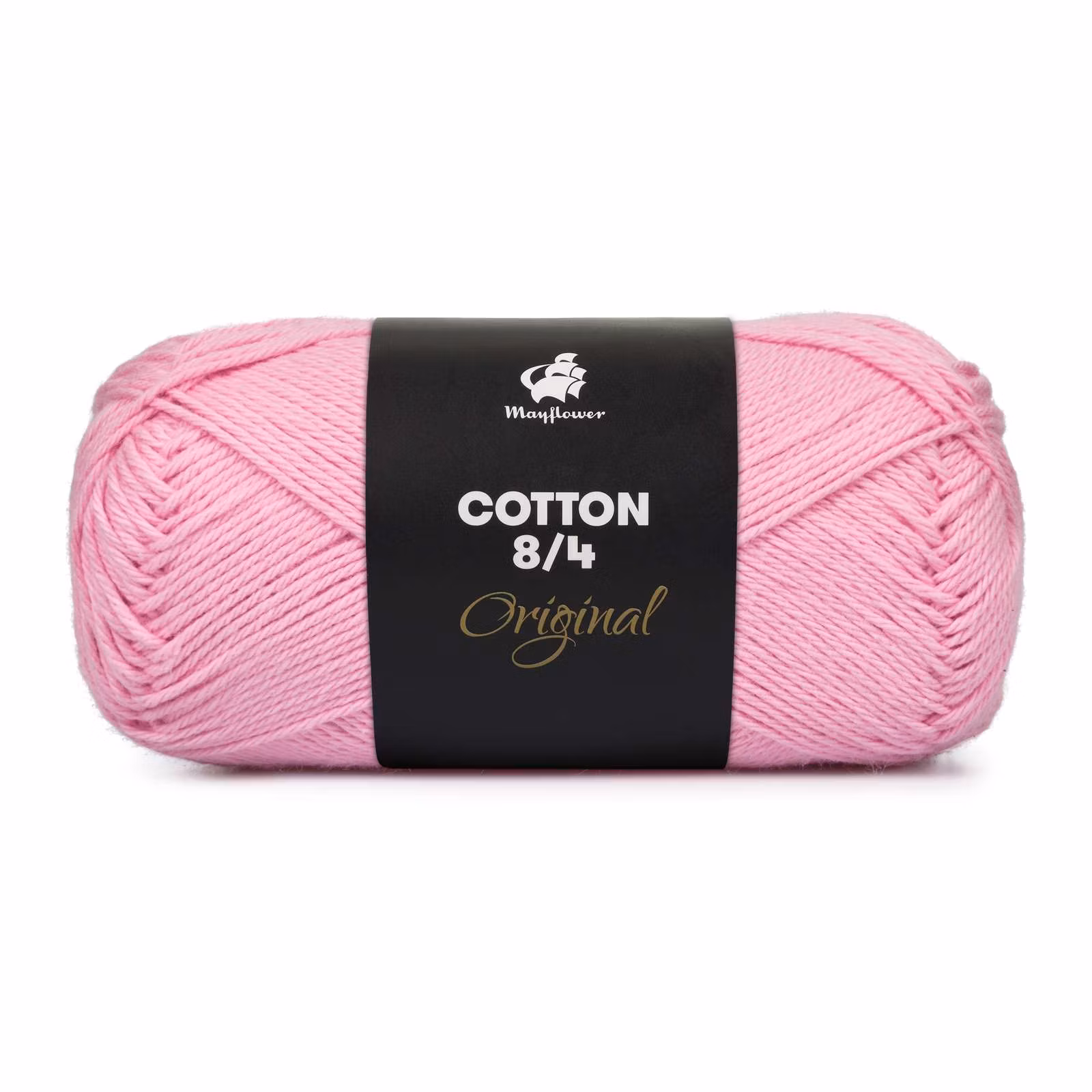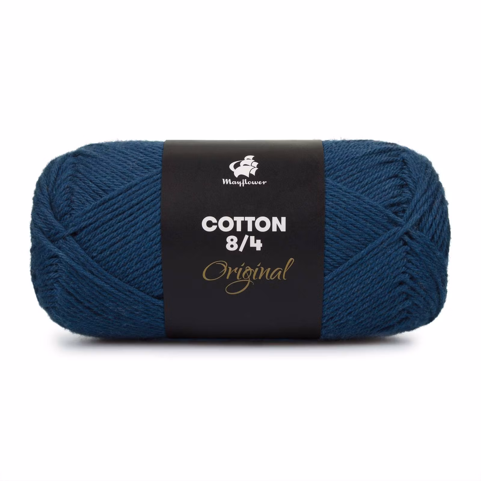 Mayflower Cotton 8/4 är ett uppskattat bomullsgarn i 100% ren bomull, älskat för sin höga kvalitet och sitt stora urval av färger. Garnet har en mjuk och fin struktur som gör det lätt att arbeta med, oavsett om du stickar eller virkar. Det ger ett jämnt och vackert resultat, vilket gör det till ett perfekt val både för nybörjare och för dig som skapar varje dag.