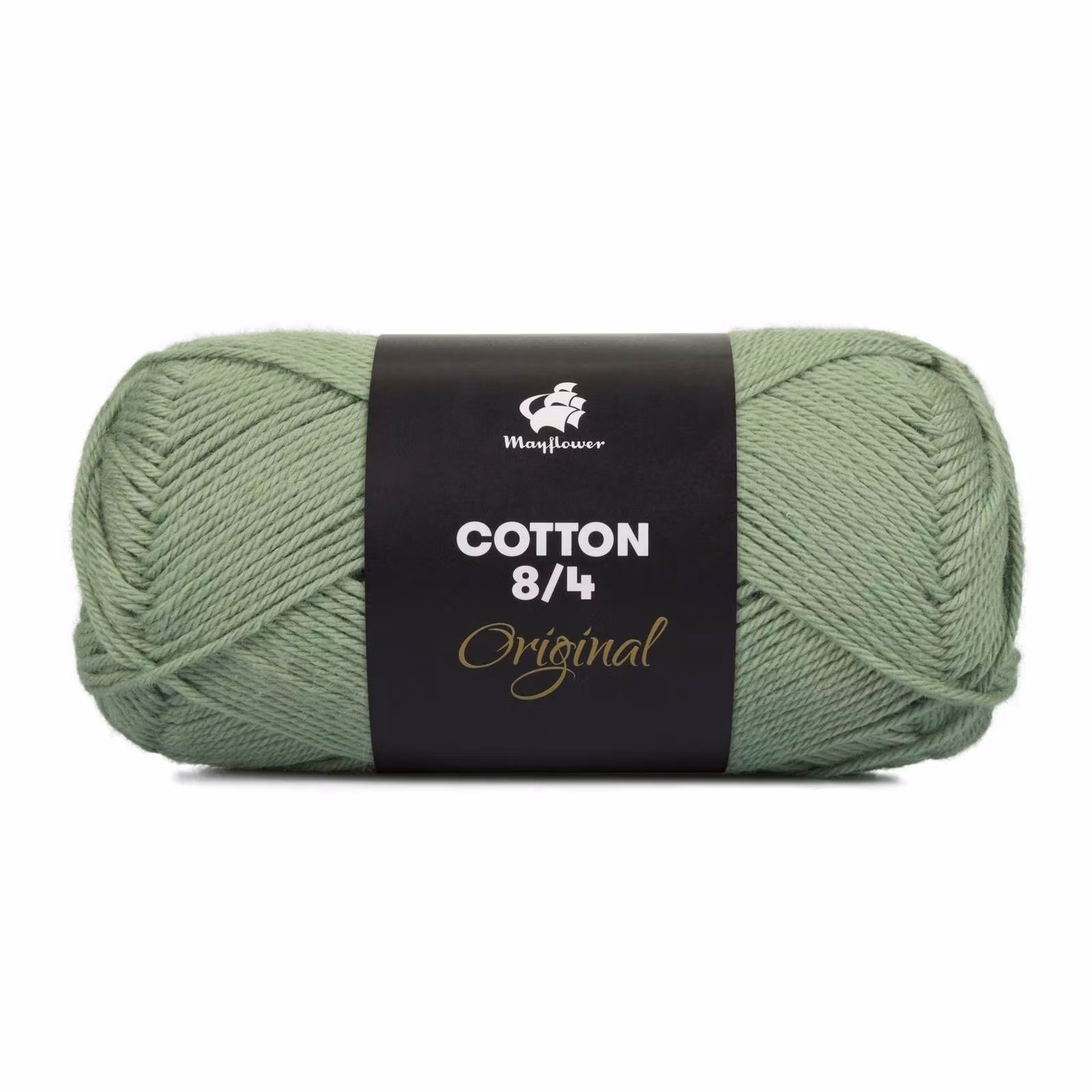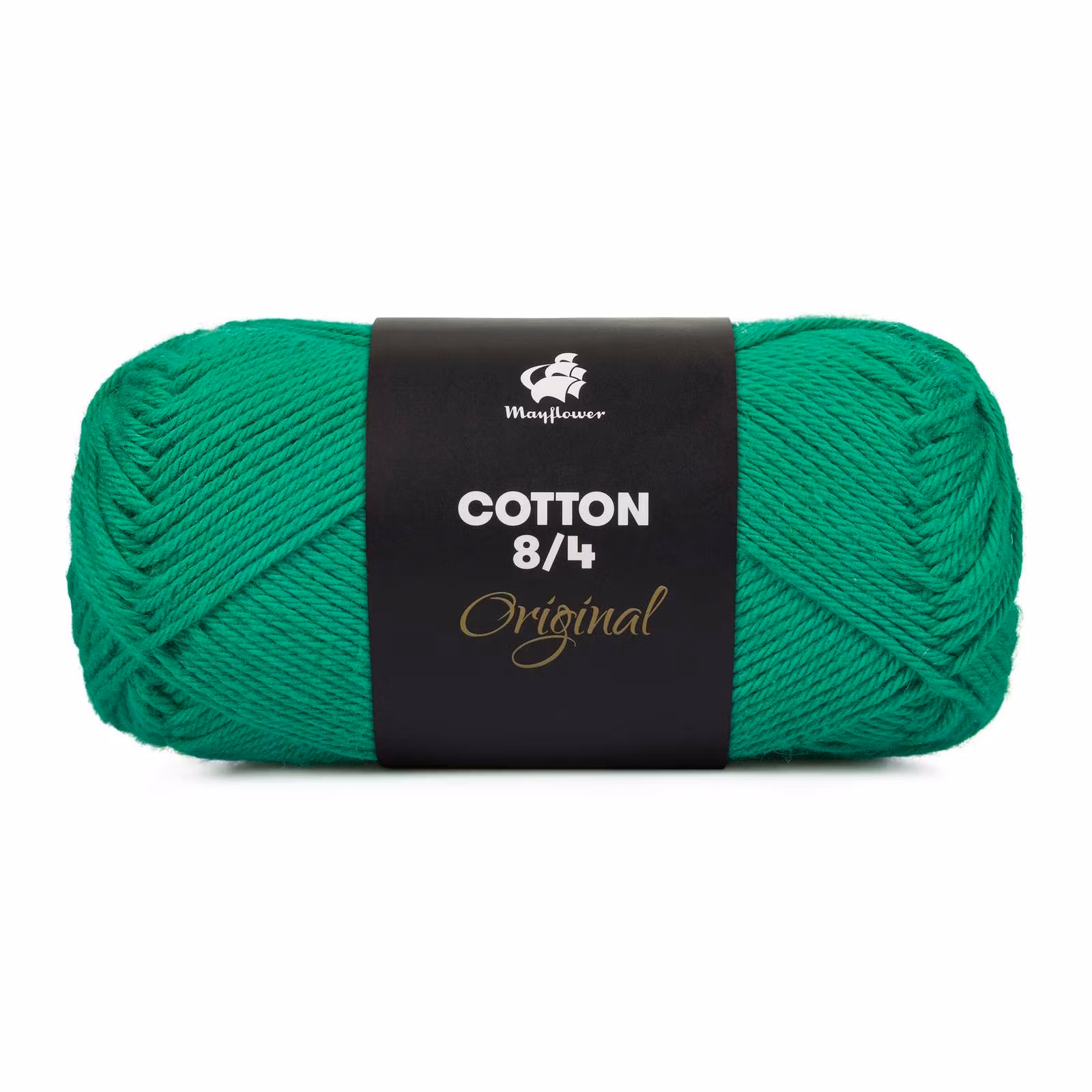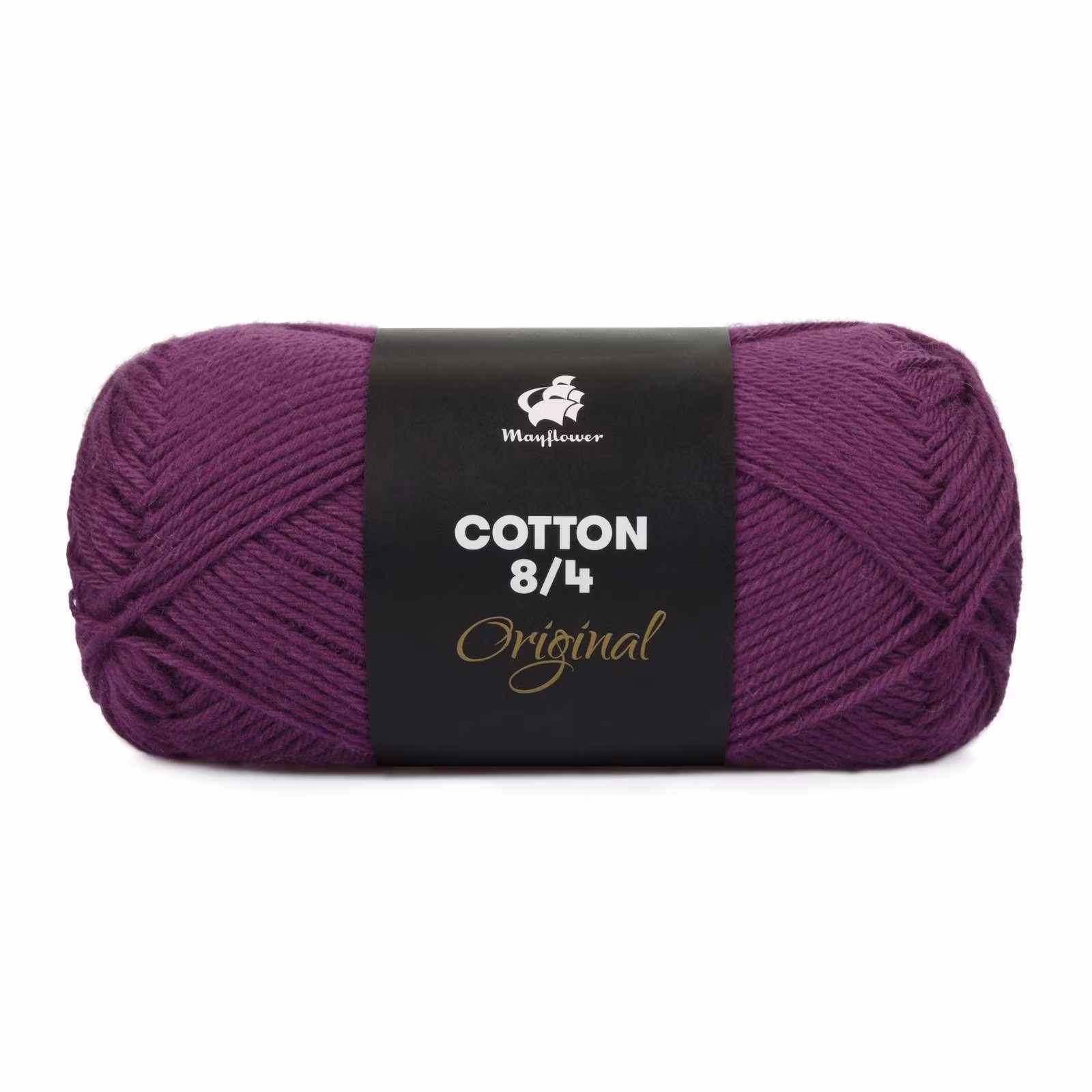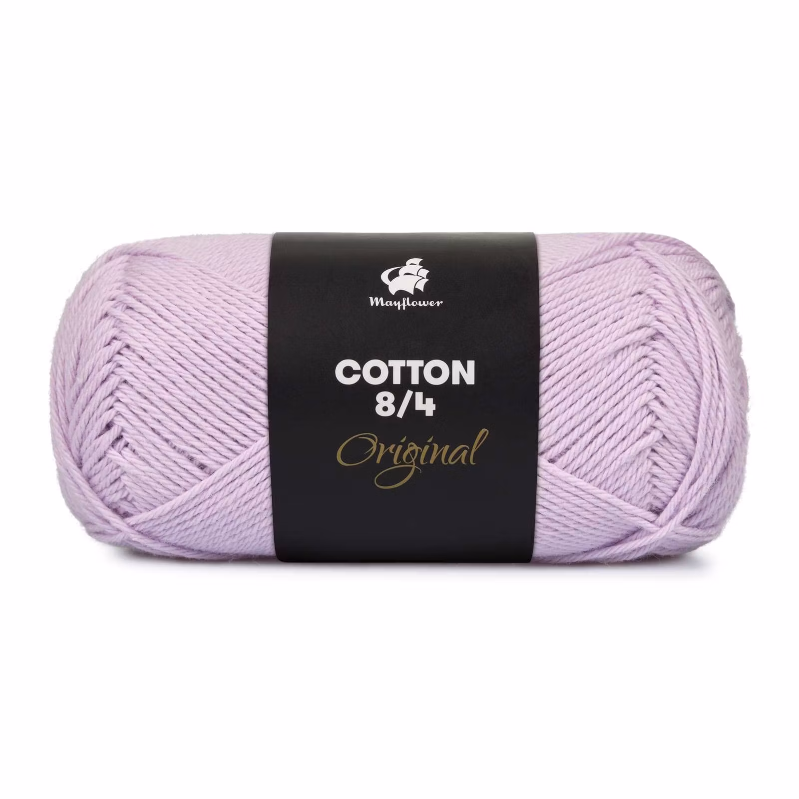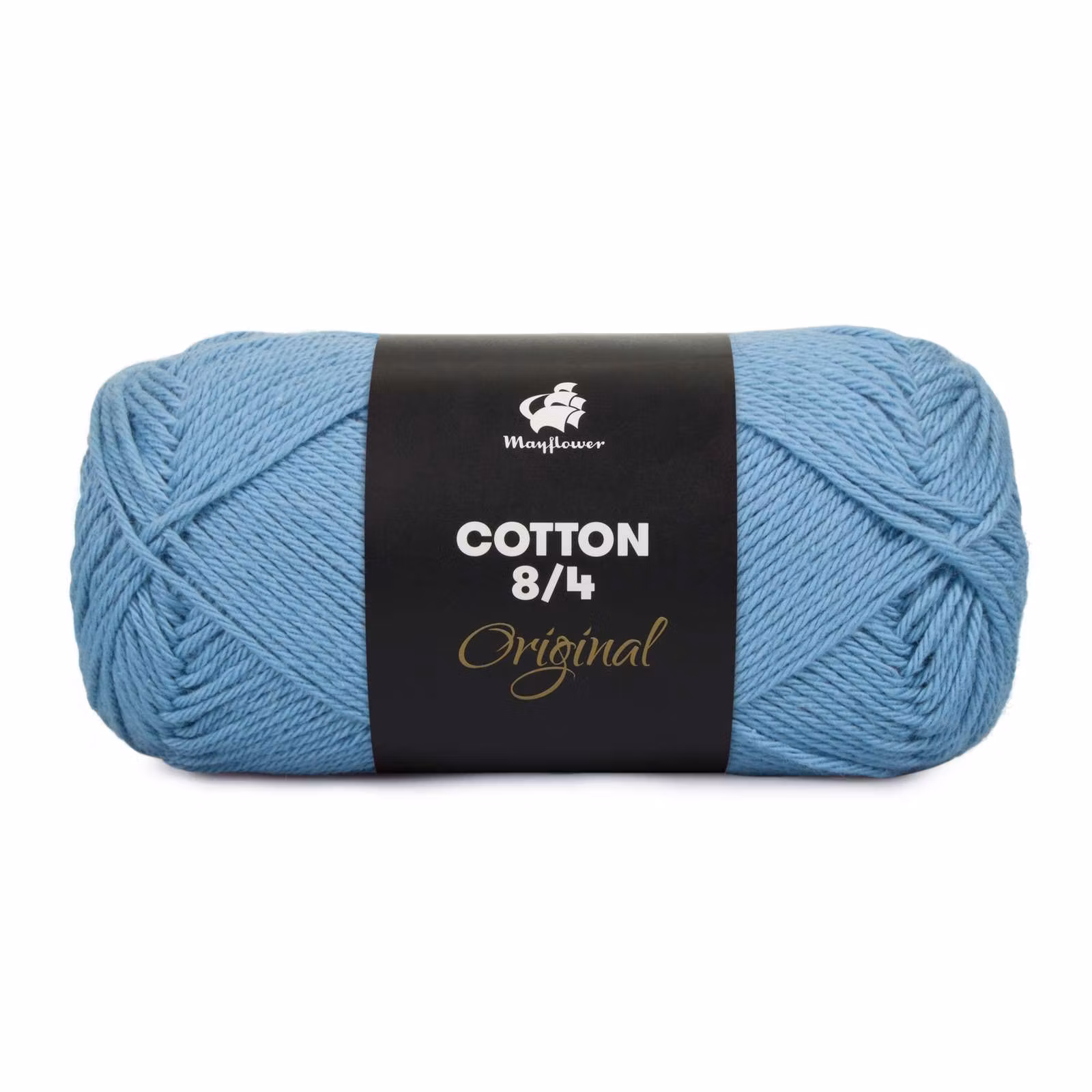 Mayflower Cotton 8/4 50 g är ett slitstarkt bomullsgarn i vackra färger. Perfekt för virkning och stickning.