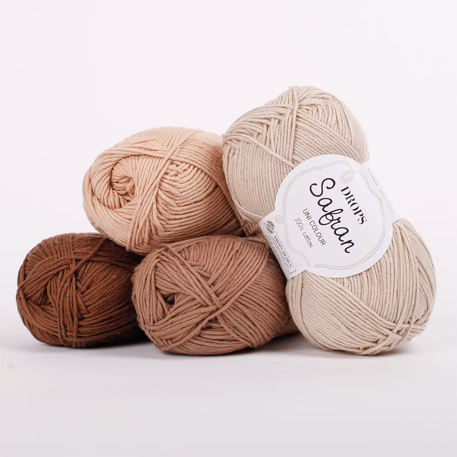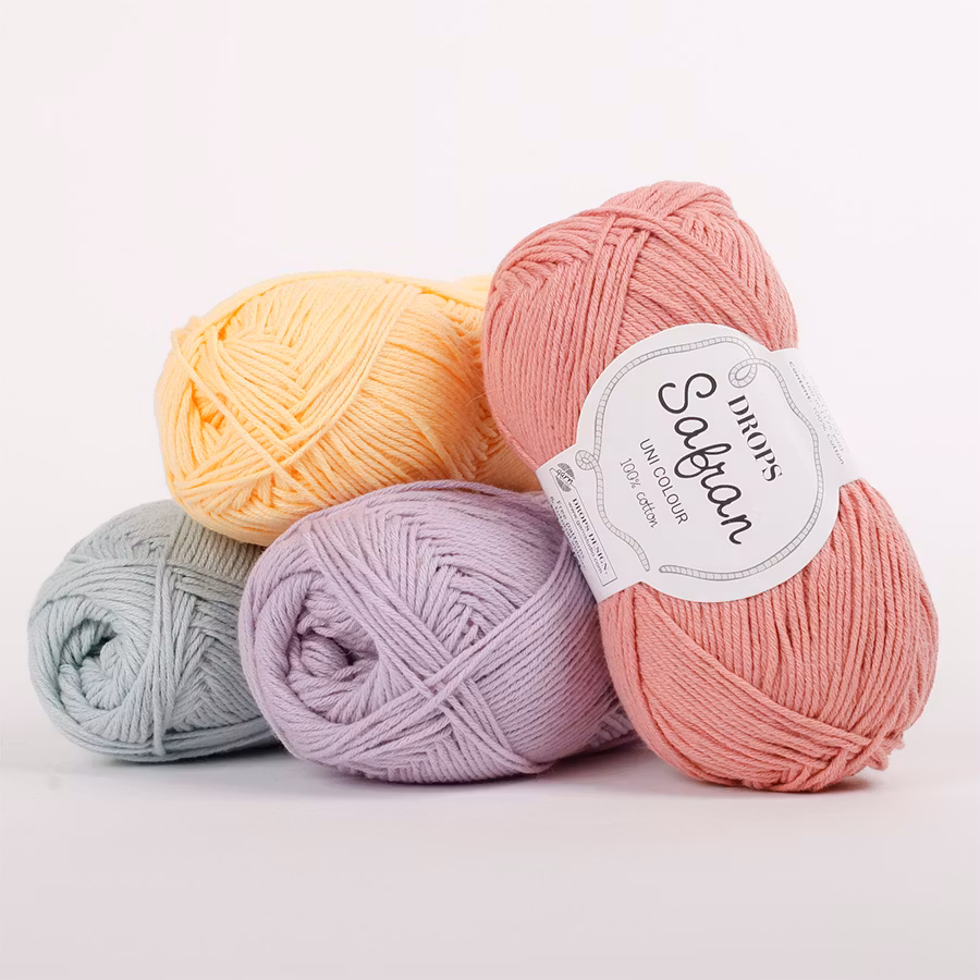 Safran har i många år varit ett av DROPS mest älskade bomullsgarn, tack vare sin mjukhet, hållbarhet och stora färgskala. Det passar perfekt till sommarplagg, babykläder, virkade accessoarer och hemprojekt – allt från luftiga toppar till små filtar och disktrasor.