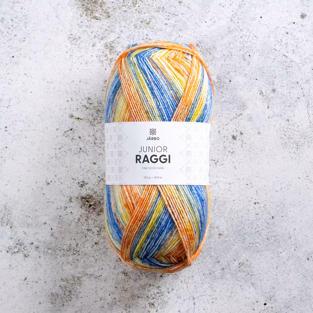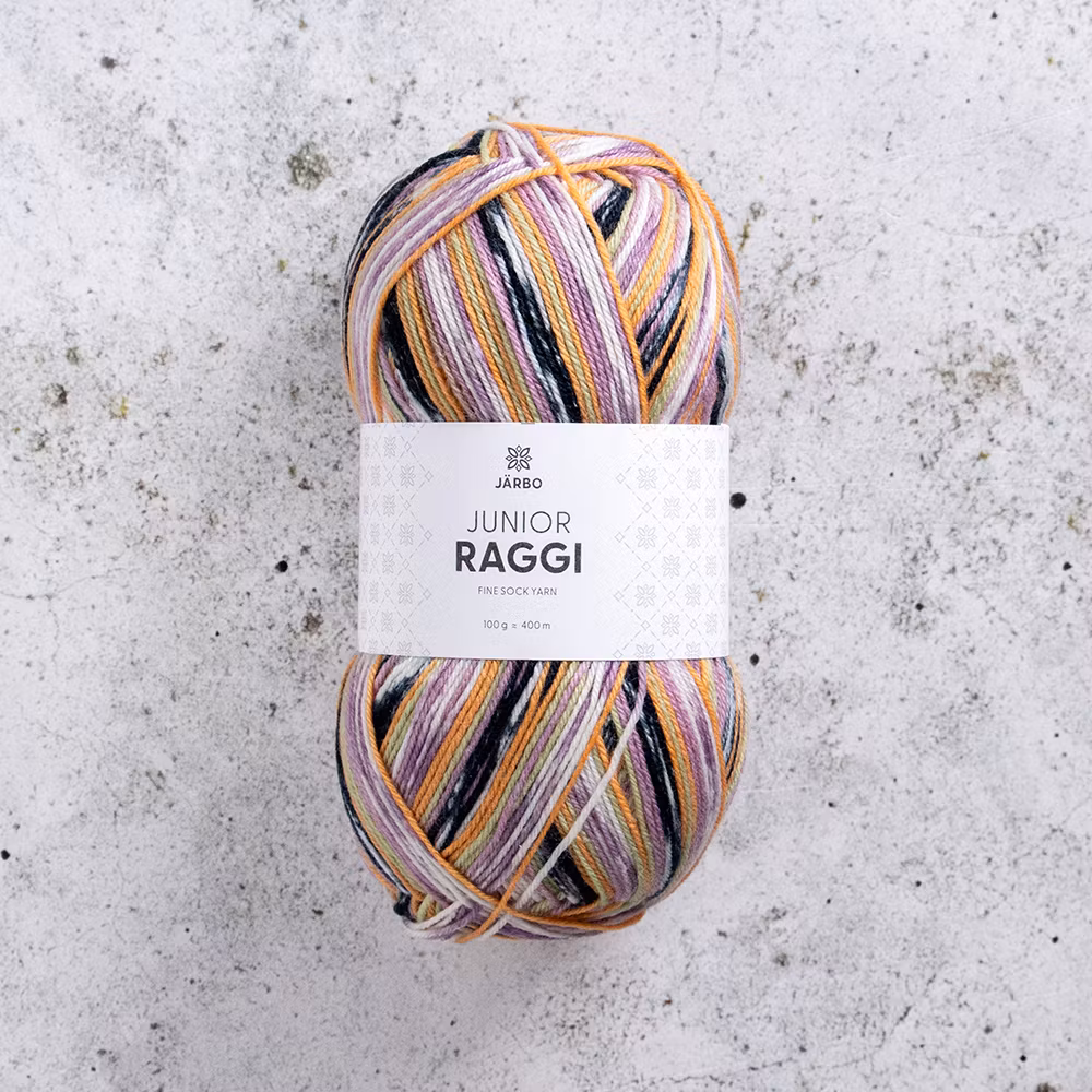 Järbo Junior Raggi 100 g är ett tunt och slitstarkt sockgarn i klassisk 4-trådig kvalitet. Med 400 meter per 100 gram är det perfekt för dig som vill sticka tunna, hållbara sockor med fin maskdefinition och bra passform.