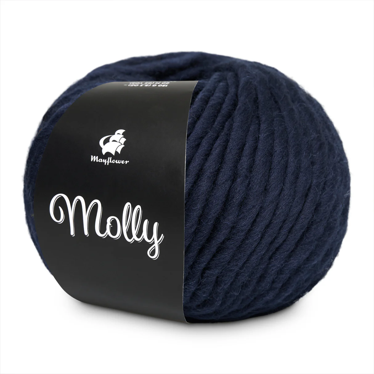 När du vill skapa något varmt, mjukt och härligt – på nolltid! Mayflower Molly är ett chunky 1-trådigt ullgarn i 100 % ren ull, skapat i samarbete med skådespelaren Molly Egelind, som drömde om ett riktigt tjockt, lyxigt och lättstickat garn.