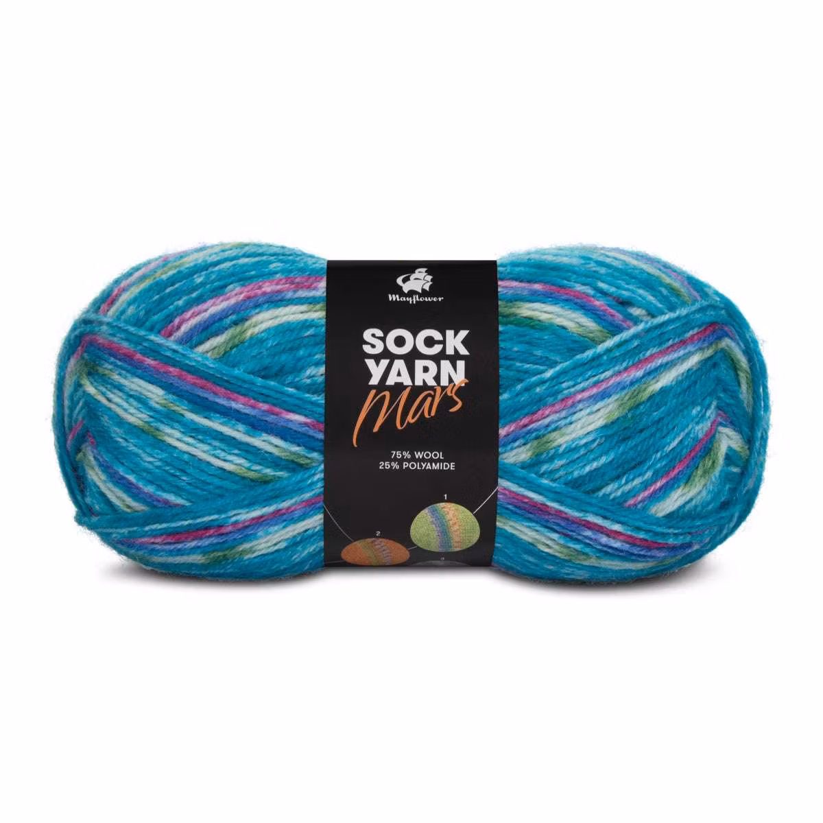 Mars Sock Yarn Universe är ett härligt sockgarn skapat för dig som vill sticka strumpor som både är slitstarka och fyllda med livfulla färger. Garnet består av 75% sydamerikansk ull och 25% polyamid – en klassisk och pålitlig blandning som ger värme, styrka och en behaglig elasticitet.