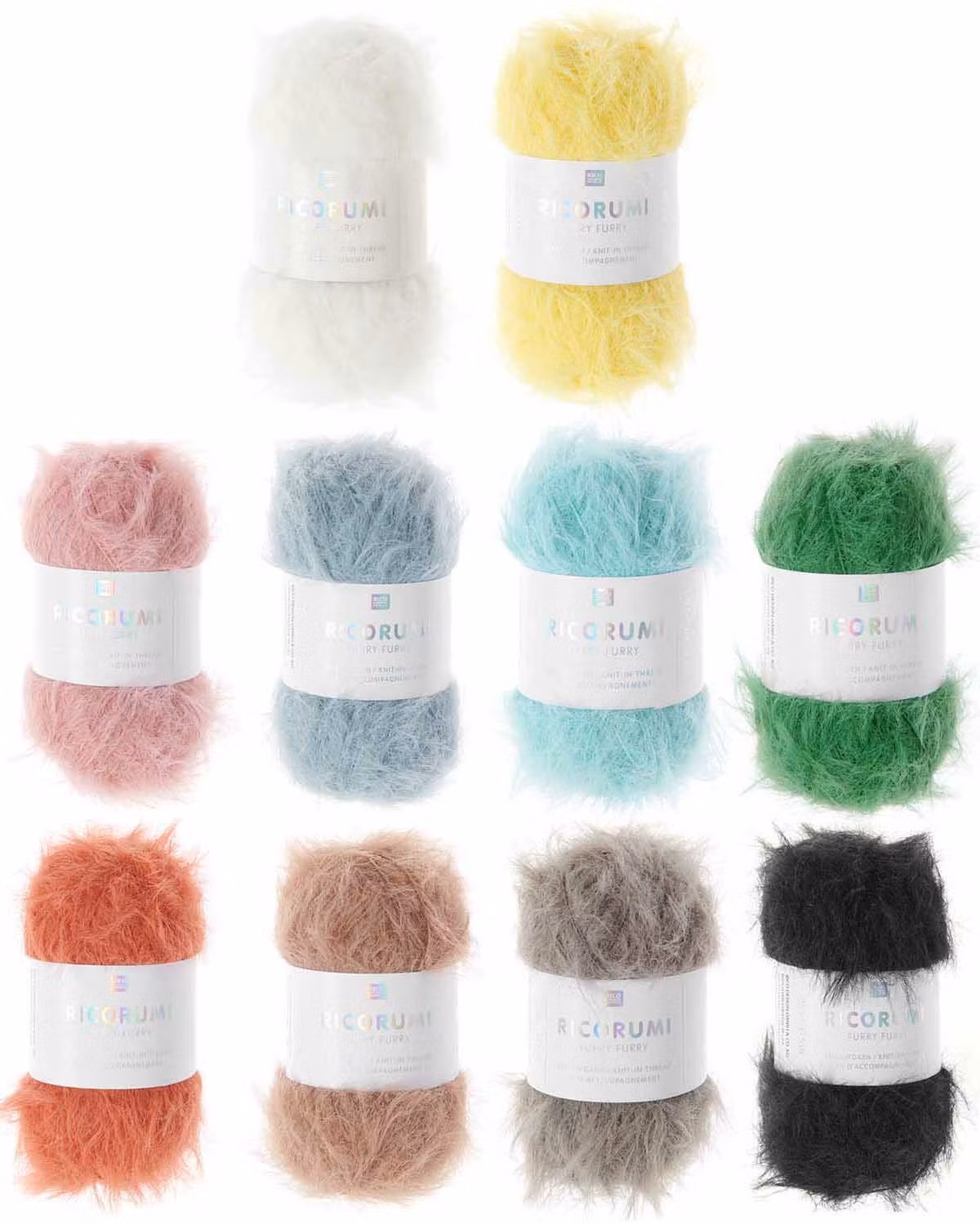 Tips: Garnet används ofta tillsammans med ett slätare Ricorumi-garn för bästa form och struktur, medan Furry Furry ger den mjuka, pälsliknande ytan.