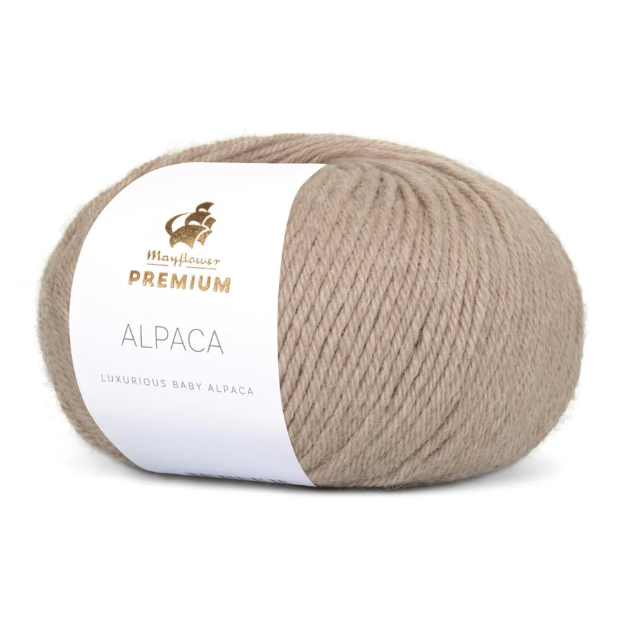 Lyxigt garn i 100 % babyalpacka. Mayflower Premium Alpaca är mjukt, värmande och perfekt för tröjor, mössor och halsdukar.