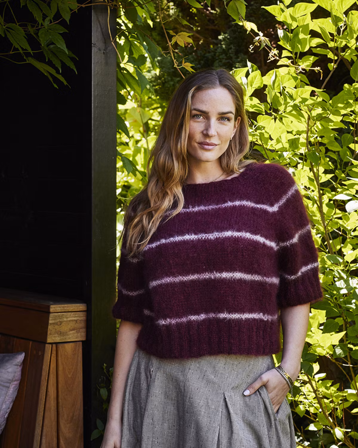 En mjuk och lättstickad tröja som stickas uppifrån och ner med förhöjd nacke, fina raglanökningar och dekorativa aviga ränder i Bella Color. Modellen får ett luftigt och bekvämt fall med generös övervidd, och passar lika bra till vardag som mysiga hemmadagar. Stickas i Bella & Bella Color by Permin för ett fluffigt, melerat uttryck.