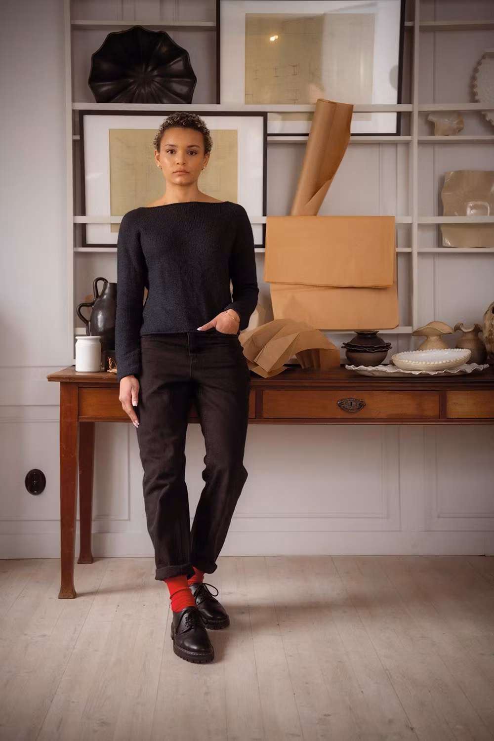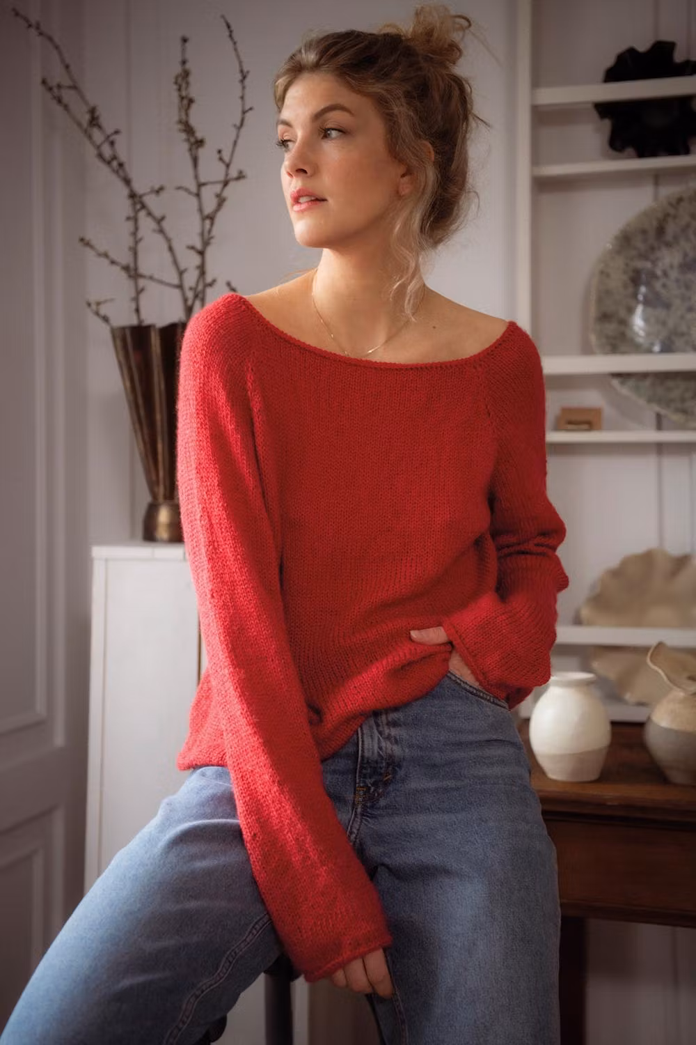 Garten är en elegant och mjuk tröja med lätt figurformning och en vacker urringning i ryggen. Den glesa stickningen framhäver garnets naturliga fall och skapar ett luftigt, följsamt plagg med exklusiv känsla.