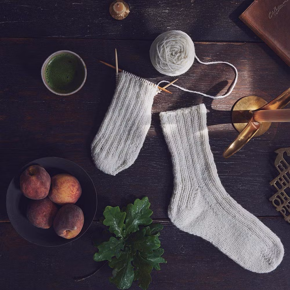 Gullblanka är ett stickmönster på resårstickade yllesockor som stickas från tån och upp. Modellen har en välsittande häl och ett mjukt, följsamt skaft som gör dem bekväma i vardagen. En praktisk och tidlös socka som passar perfekt som bas i sockgarderoben – både för hemmamys och vardagsbruk.