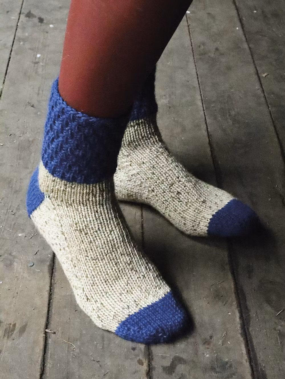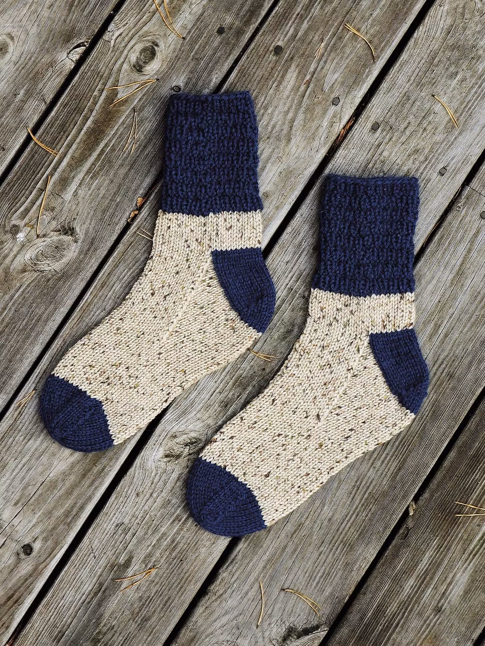 Stickmönster på Mjärde socka. Klassisk modell med dekorativ resårmudd. Stickas från skaftet ner och kan göras enfärgad.