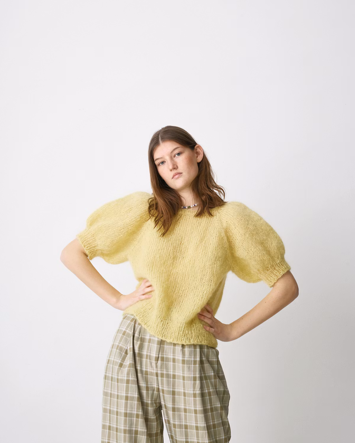 Det här är en mjuk raglantröja med kort puffärm och ett feminint men avslappnat uttryck. De korta ärmarna med lätt puff ger plagget karaktär, samtidigt som raglankonstruktionen skapar en fin och följsam passform över axlarna. Tröjan har en rak silhuett och är enkel att bära både till vardags och till mer uppklädda tillfällen.