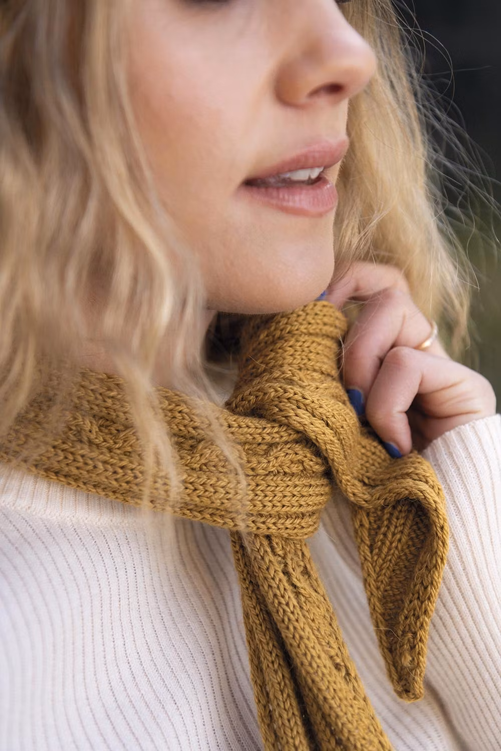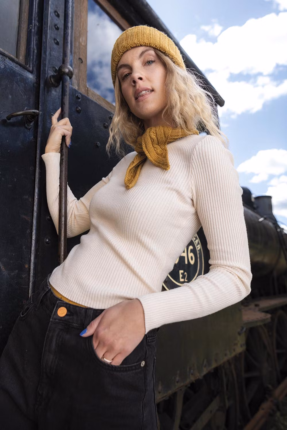 Räls är ett stickmönster på en elegant och lättburen scarf som ger det lilla extra till din outfit. Det diskreta flätmönstret skapar struktur och variation utan att bli svårt – ett mönster som snabbt blir enkelt att memorera. Scarfen stickas från spets till spets. Först formas den med ökningar, därefter med minskningar tillbaka till spets, vilket ger ett följsamt och harmoniskt fall.