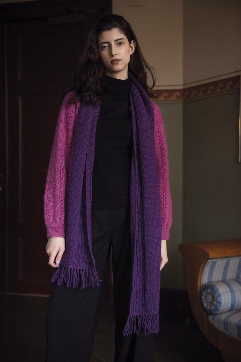 Om man avstår från fransar räcker 300 g garn.