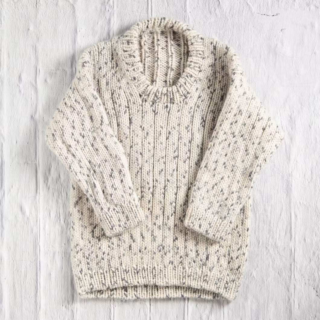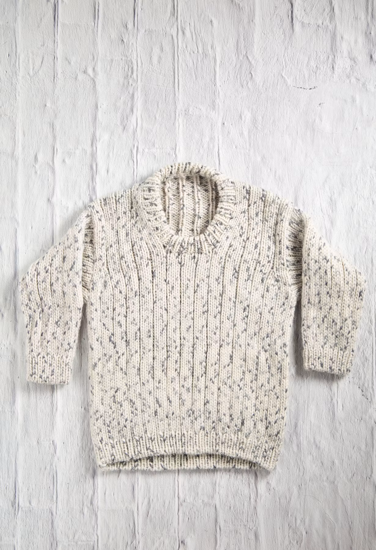 Sigrid är ett stickmönster på en resårstickad barntröja som stickas uppifrån och ner. Arbetet börjar med bakstycket som formas med förkortade varv och ökningar för en bra passform över axlarna. Därefter plockas maskor upp för axlarna och tröjan stickas samman under ärmarna innan kropp och ärmar färdigställs.