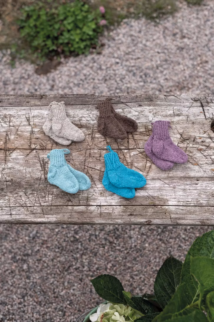 Smultronknopp är ett stickmönster på små och användbara babysockor som går snabbt att sticka. De stickas uppifrån och ner i Junior Raggi och passar perfekt i de första små skorna. Ett enkelt och charmigt projekt som blir fint i många olika färger – och en uppskattad gåva till en nyfödd.