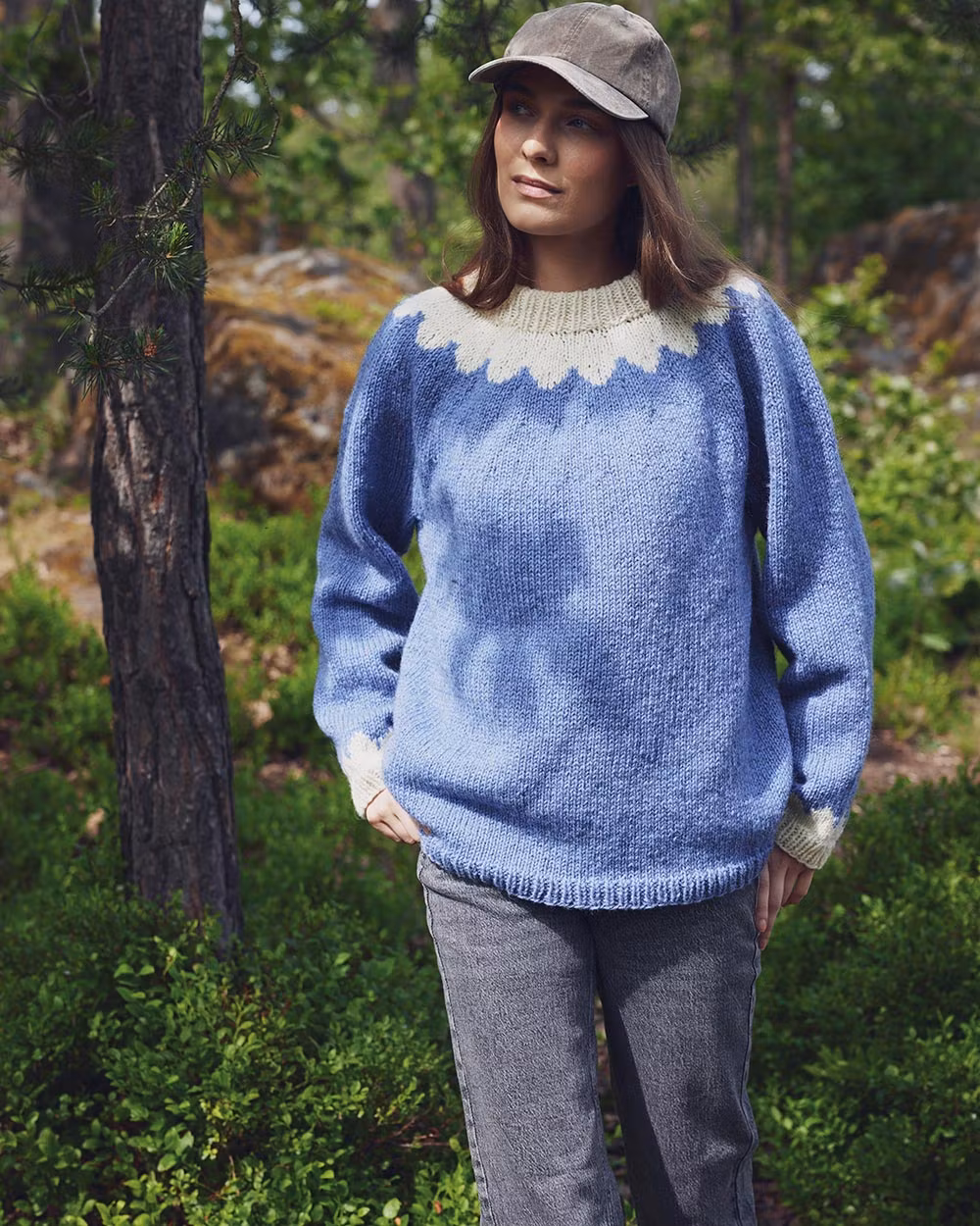 Storstenen är ett stickmönster på en oktröja inspirerad av flyttblocket på Storstenshöjden i Kilsbergen och de sägner som omger platsen. Tröjan stickas nedifrån och upp och har mönsterstickade partier som ger ett tydligt men lättillgängligt uttryck. Modellen passar särskilt bra för dig som vill prova på mönsterstickning i ett större plagg. En klassisk oktröja med berättelse och struktur.