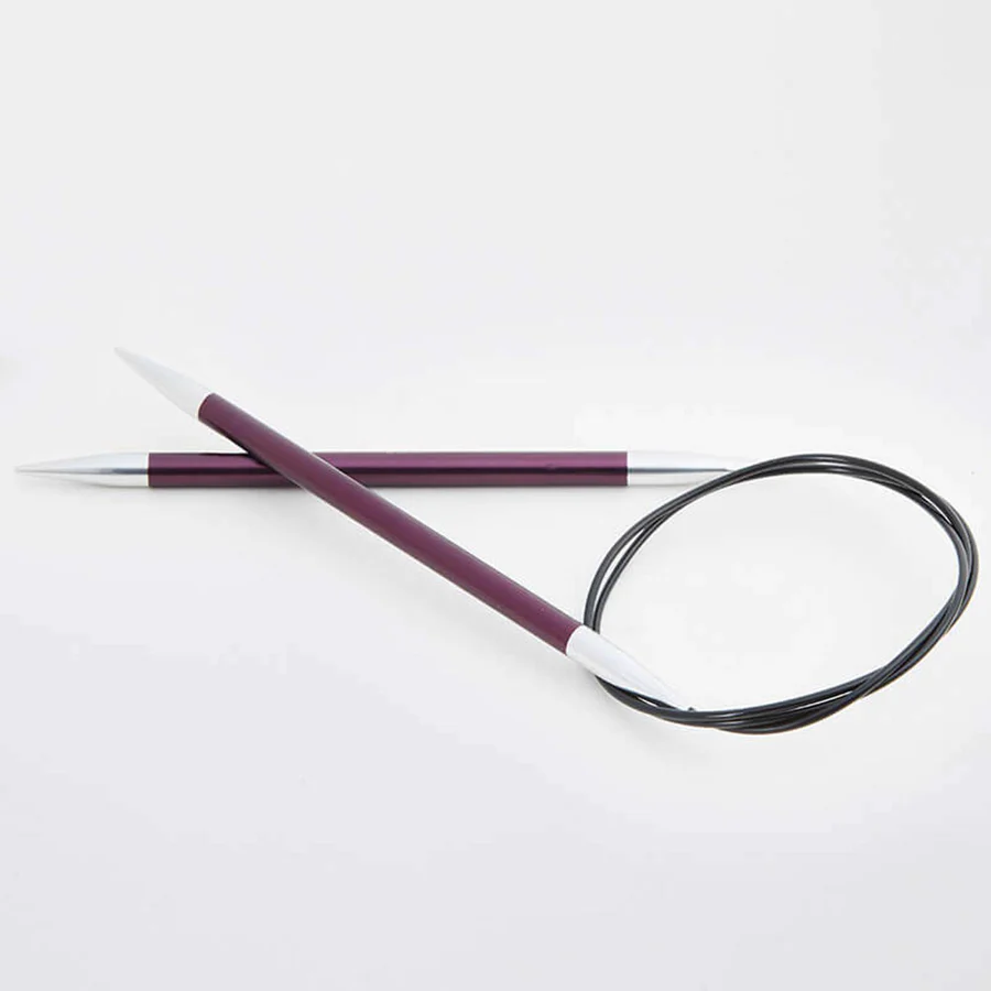 KnitPro Zing rundstickor i lätt aluminium med färgkodade storlekar. Släta, hållbara och perfekta för både nybörjare och erfarna stickare.
