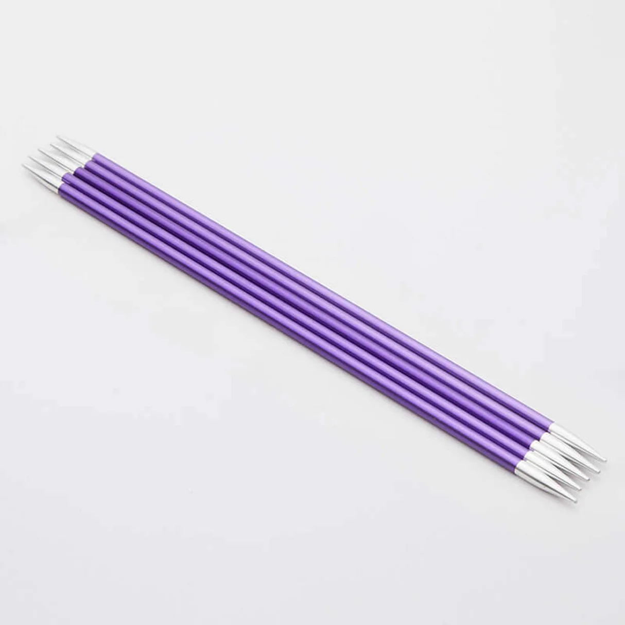 KnitPro Zing strumpstickor i lätt metall med färgkodade storlekar. Släta, hållbara och perfekta för strumpor och småprojekt. 5 stickor per set.