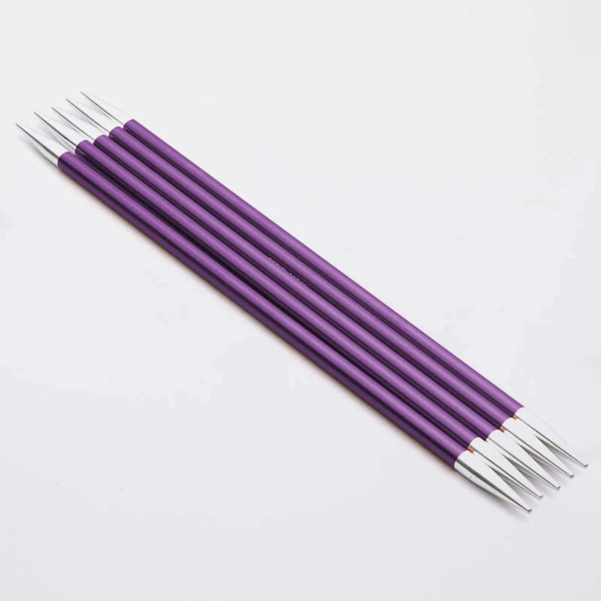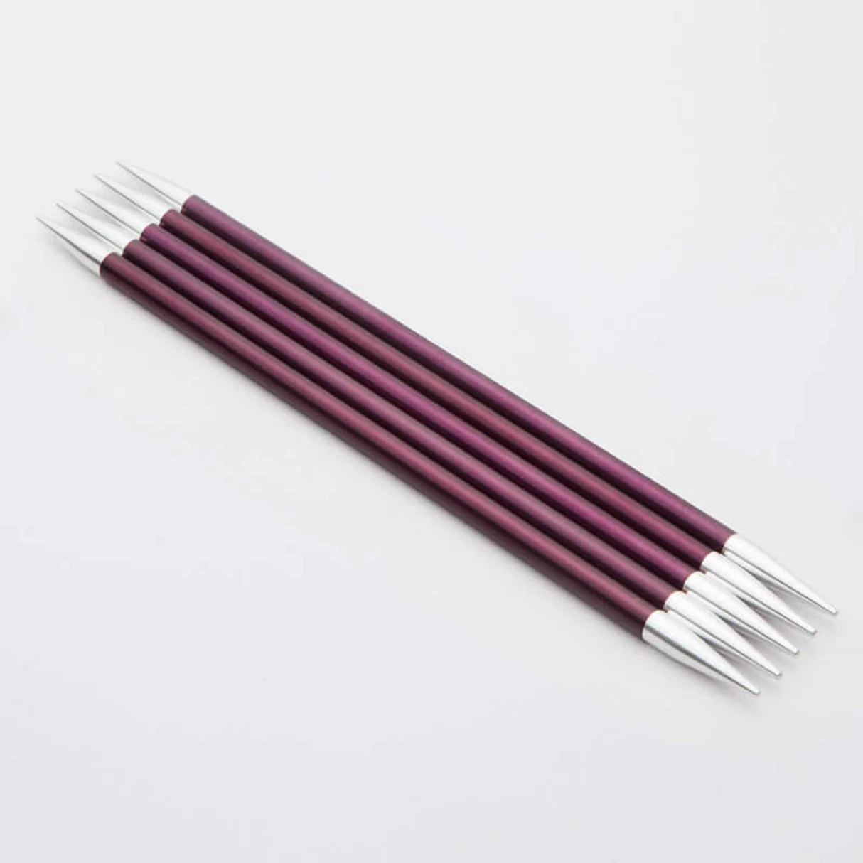 KnitPro Zing strumpstickor i lätt aluminium. Släta, hållbara och färgkodade storlekar – perfekta för strumpor och små projekt.