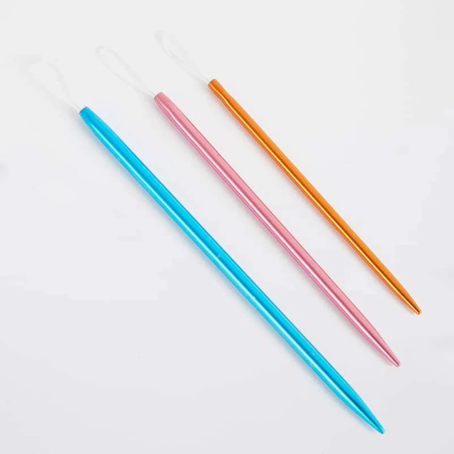 KnitPro stoppnålar i aluminium, 3 storlekar. Stort öga, rundad spets och smidig yta för enkel montering av stickade och virkade projekt.