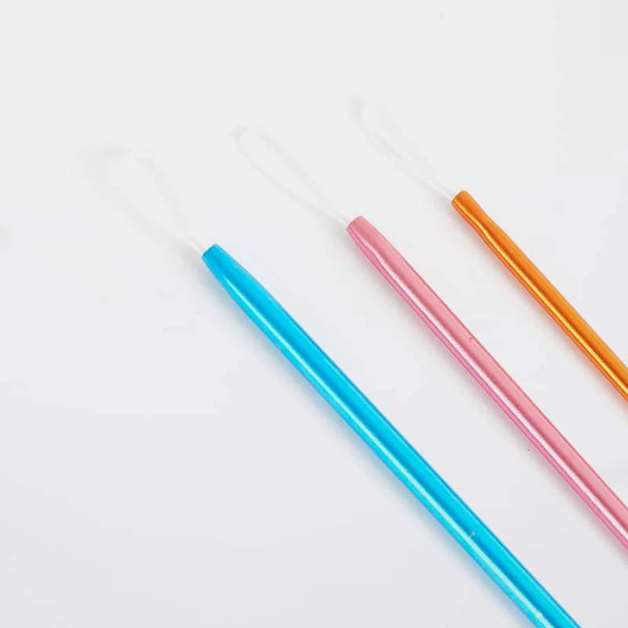 Nålarna har ett stort och flexibelt kabelöga som gör det väldigt lätt att trä garnet, även när du arbetar med grövre garn eller flera trådar. Den släta aluminiumytan låter nålen glida igenom arbetet utan motstånd, vilket gör monteringen både snabb och behaglig.